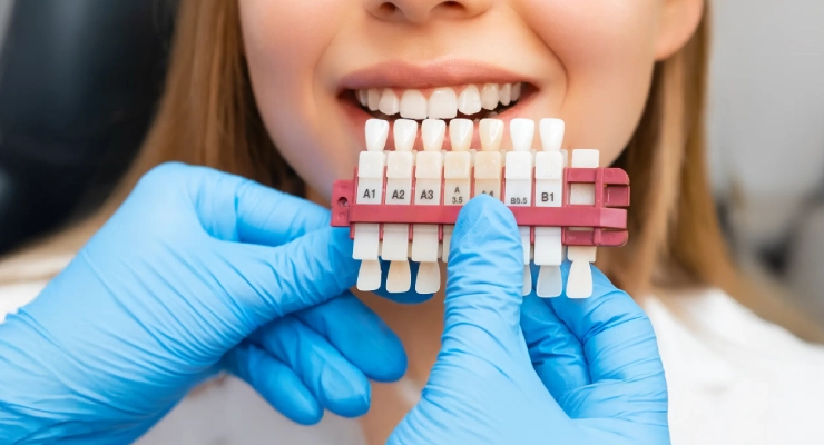 Cosmetic dentists emphasize that choosing the right veneer shade always starts with your skin tone and the whites of your eyes to ensure a natural, non‑artificial smile. It’s usually best to avoid extremely bright whites that clash with your complexion, and to aim for a veneer shade close to your natural teeth—just one or two shades lighter.Your dentist will also assess your teeth in natural daylight, not only under operatory lights, because strong clinical lighting can make the veneers appear different in day‑to‑day life and in photos. Experts recommend choosing a shade that fits your age; very bright whites may look unnatural on older patients, while more moderate shades tend to appear more realistic and flattering.It’s essential to test the shade using trial veneers or a shade guide by holding them next to your teeth before bonding the final veneers. This ensures that the color works well with your lips, gums, and overall facial features. Done this way, you’ll end up with an ideal veneer shade that combines attractiveness, harmony with your appearance, and a natural look both in person and in pictures.You may be interested in: Teeth Whitening Trays: Everything You Need to Know for a Brighter Smile