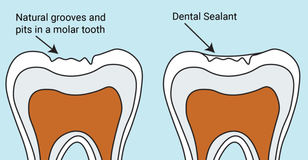 By sealing pits, fissures, and small grooves on the chewing surfaces, sealants reduce the likelihood that food particles will get trapped in the teeth. This helps support better overall oral hygiene and decreases the risk of decay.